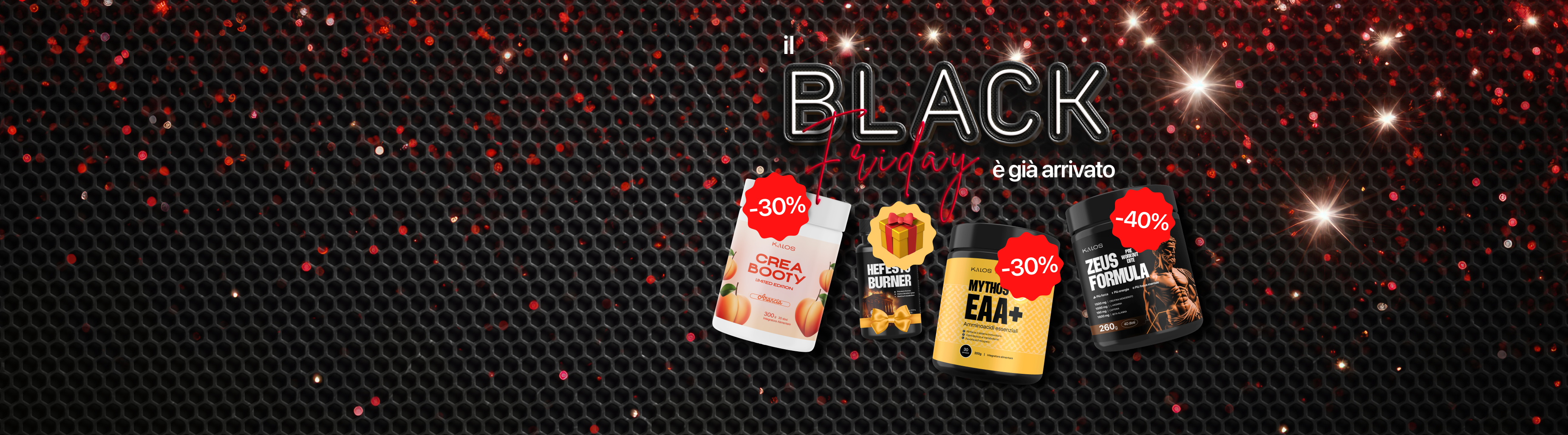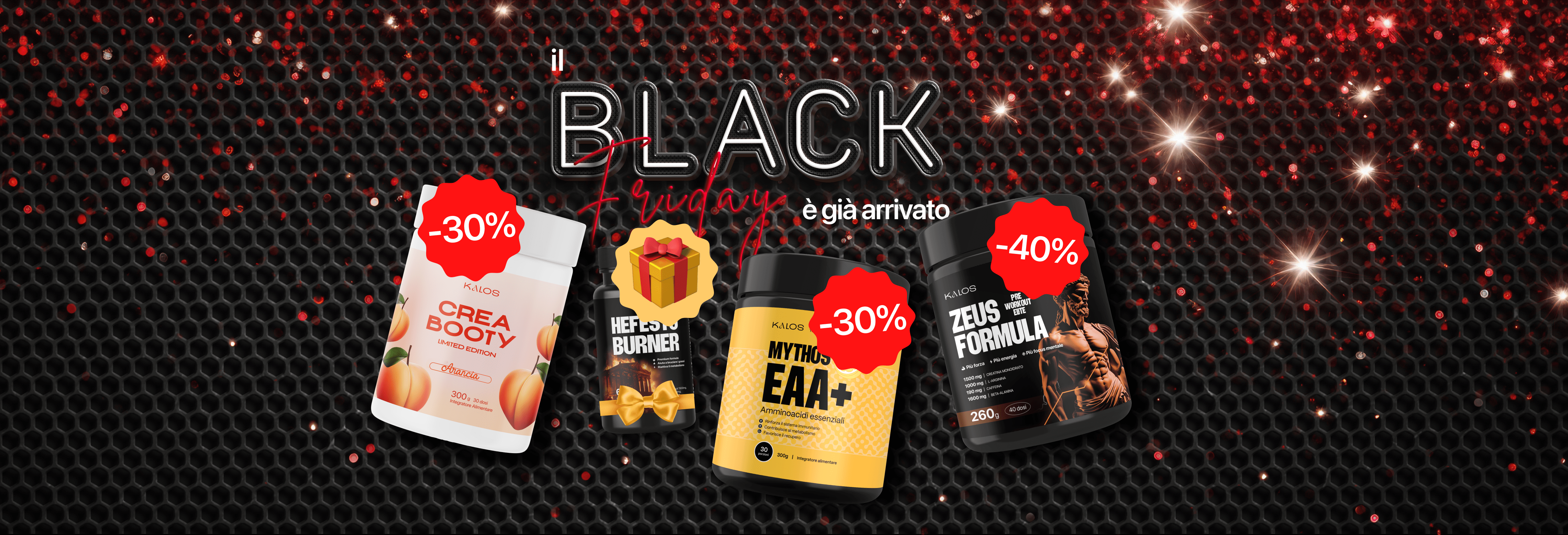 Sfrutta le offerte più forti dell’anno: -30% su Creabooty e EAAs, -40% sul Pre-Workout, e un Brucia Grassi in regalo per ogni ordine sopra i 60€. Solo per il Black Friday: potenzia la tua performance e risparmia al massimo.